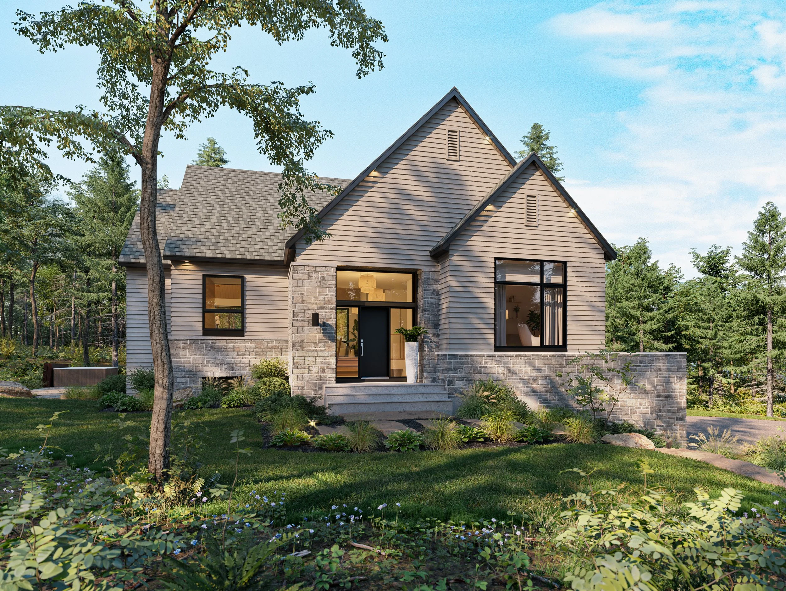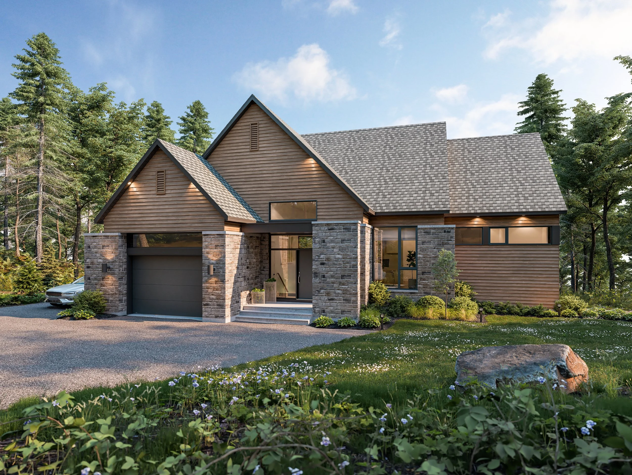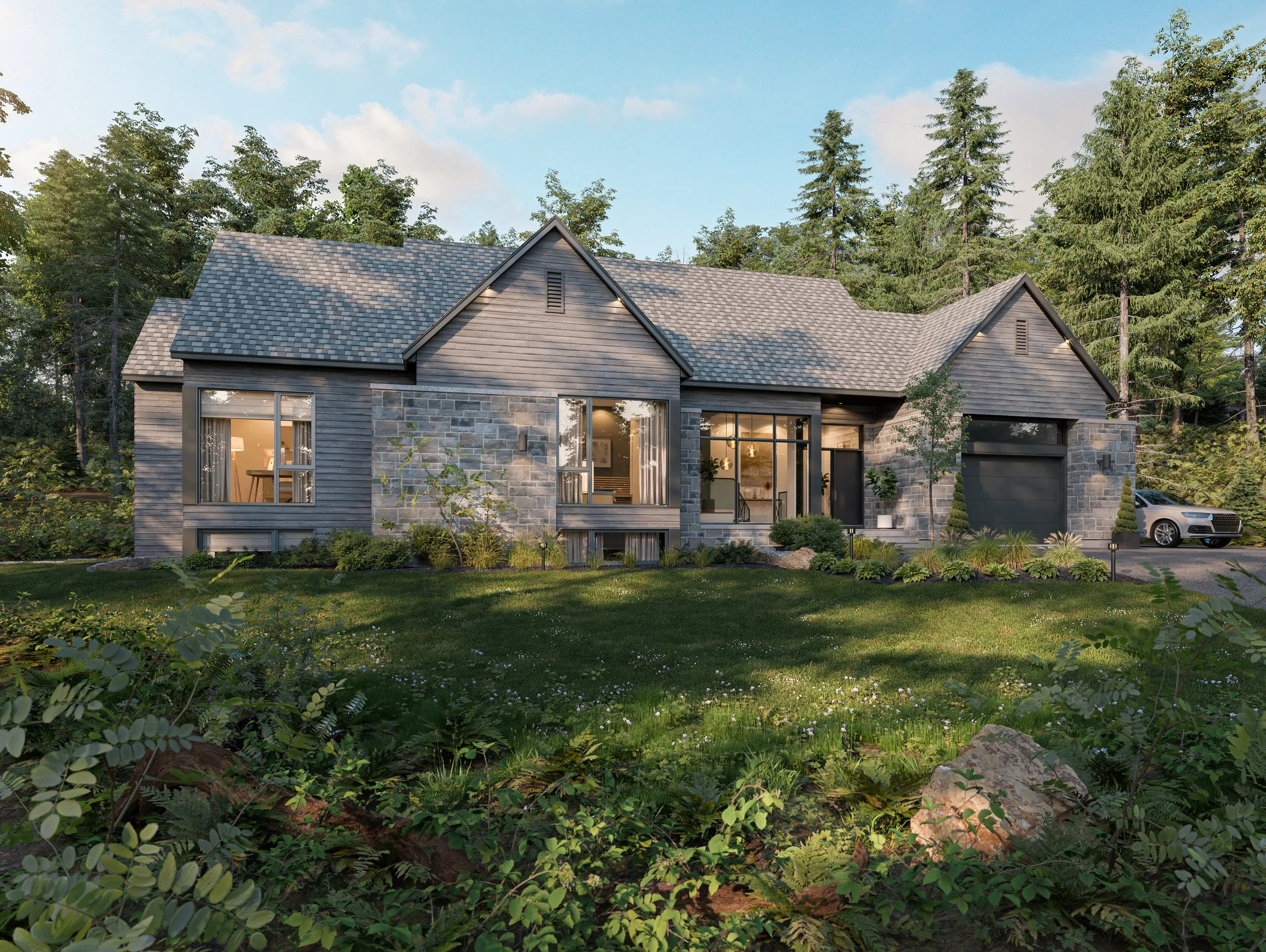 Appréciez la lumière et la vue sur la nature des Laurentides, dans le confort de votre maison neuve, grâce à une impressionnante fenestration. La superficie des pièces vous permettra d’être créatif dans l’aménagement de votre nouvelle demeure. Le Hors-piste est le seul modèle de bungalow proposé dont 3 des faces du salon sont fenestrées.